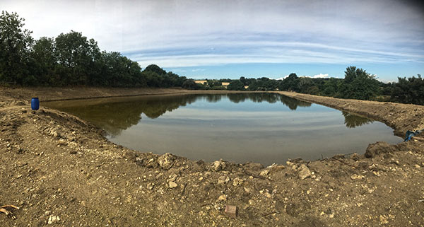 A newly excavated lake that is almost full awaiting landscaping and planting.There is nothing more satisfying than seeing a lake or pond maturing into its surroundings and seeing a healthy eco system build over time, especially when it started as a plain old field and you’re the one responsible for creating it.