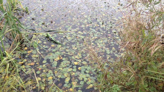 After cutting and clearing the weed, adding a dye to hinder further weed growth, this pond is now functional.This leads to a process called eutrophication which is the leading cause of excessive weed growth in freshwaters. The high concentrations of phosphorus and nitrogen act as a fertiliser and this leads to explosive productivity in primary producers such as aquatic weed and algae. This may lead to serious imbalances in the chemical, physical and biological functioning of the lake.